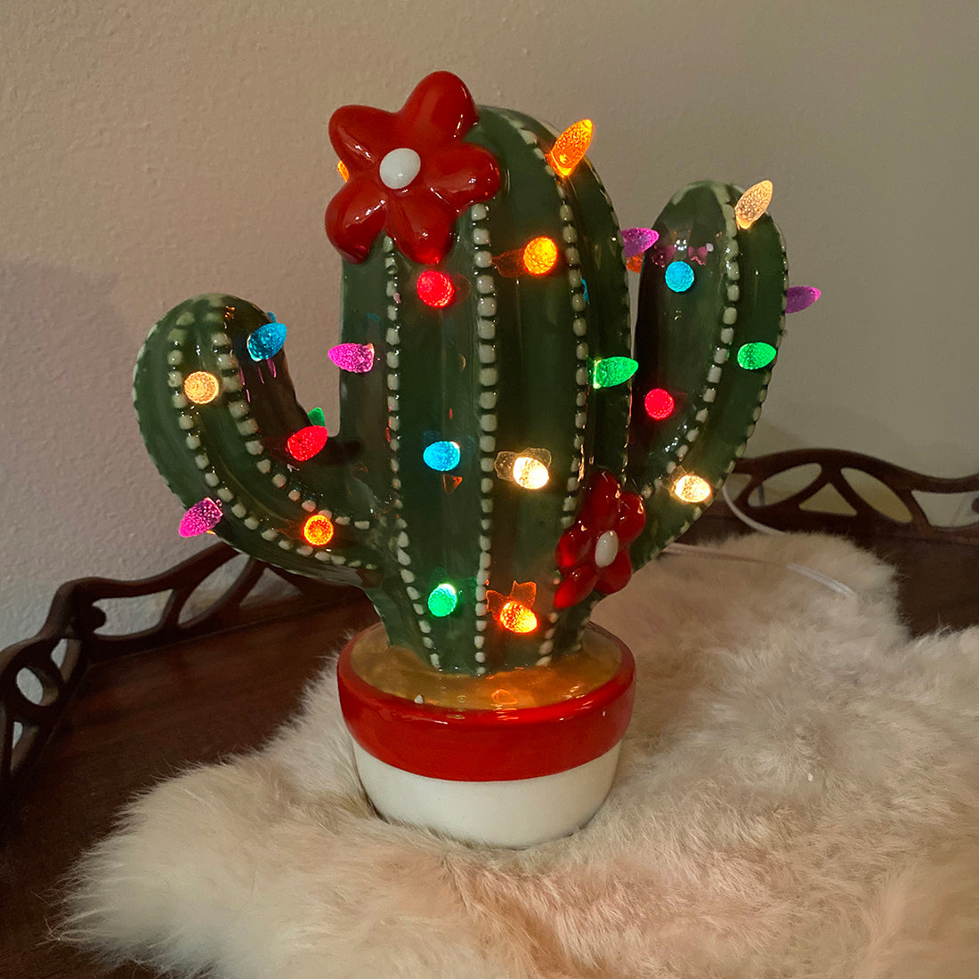 - LIGHTED CERAMIC CHRISTMAS CACTUS - The Milltown Merchants Lighted Christmas Cactus is a must have for your holiday decor! This Christmas Cactus Plant is perfect for tabletops, mantels, kitchens, bedrooms, foyers, fireplaces, bathrooms, and anywhere that needs a little something extra for the holidays. Add a pop of Christmas Cheer to your home with the Milltown Merchants Holiday Cactus! Experience the brilliance of LED lights - cooler, safer, and brighter than ever before, lighting up your life without the heat and worry of traditional lighting options.