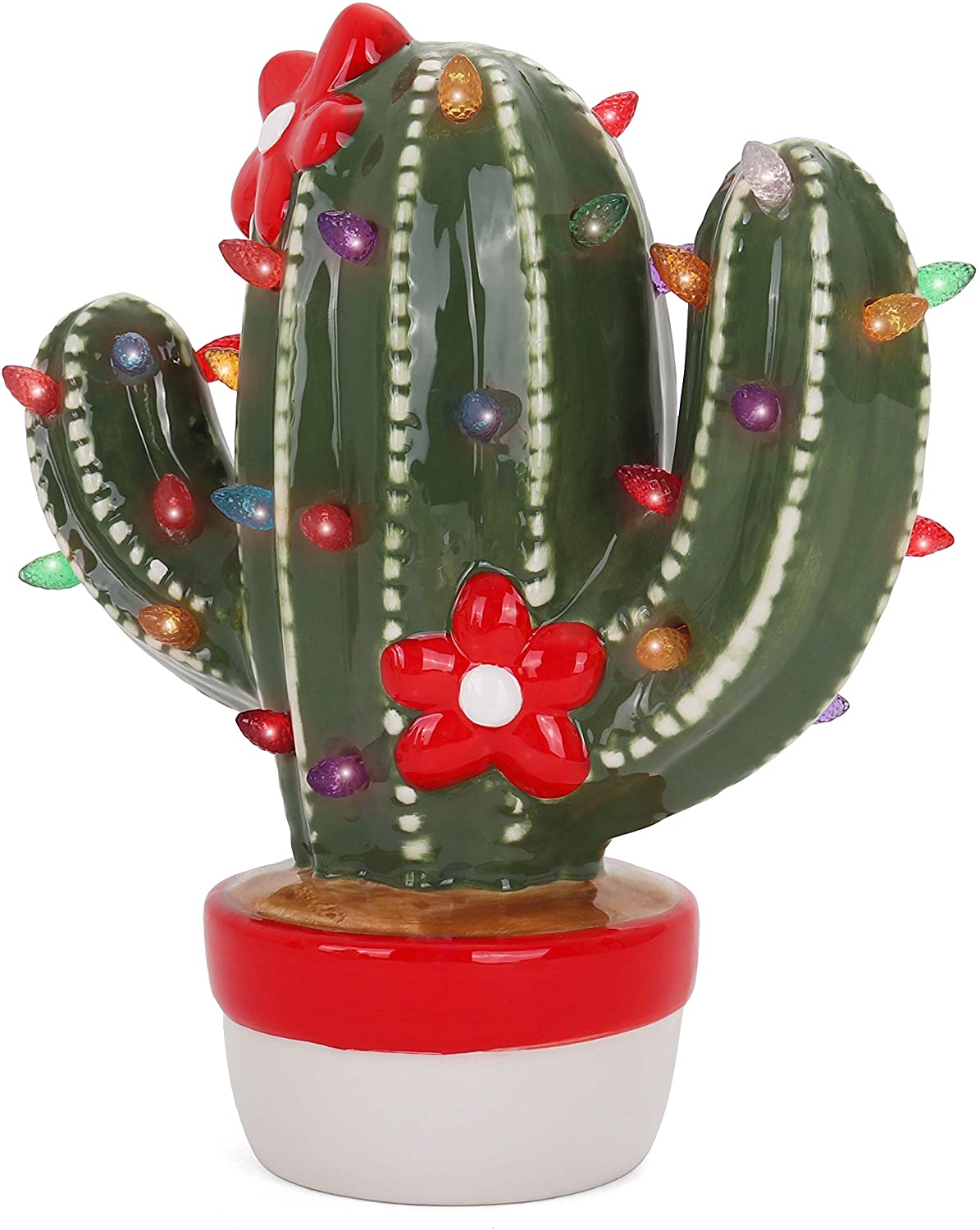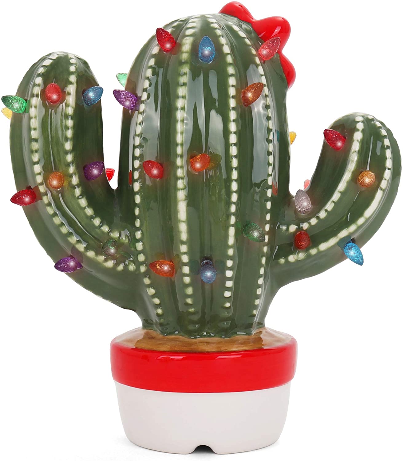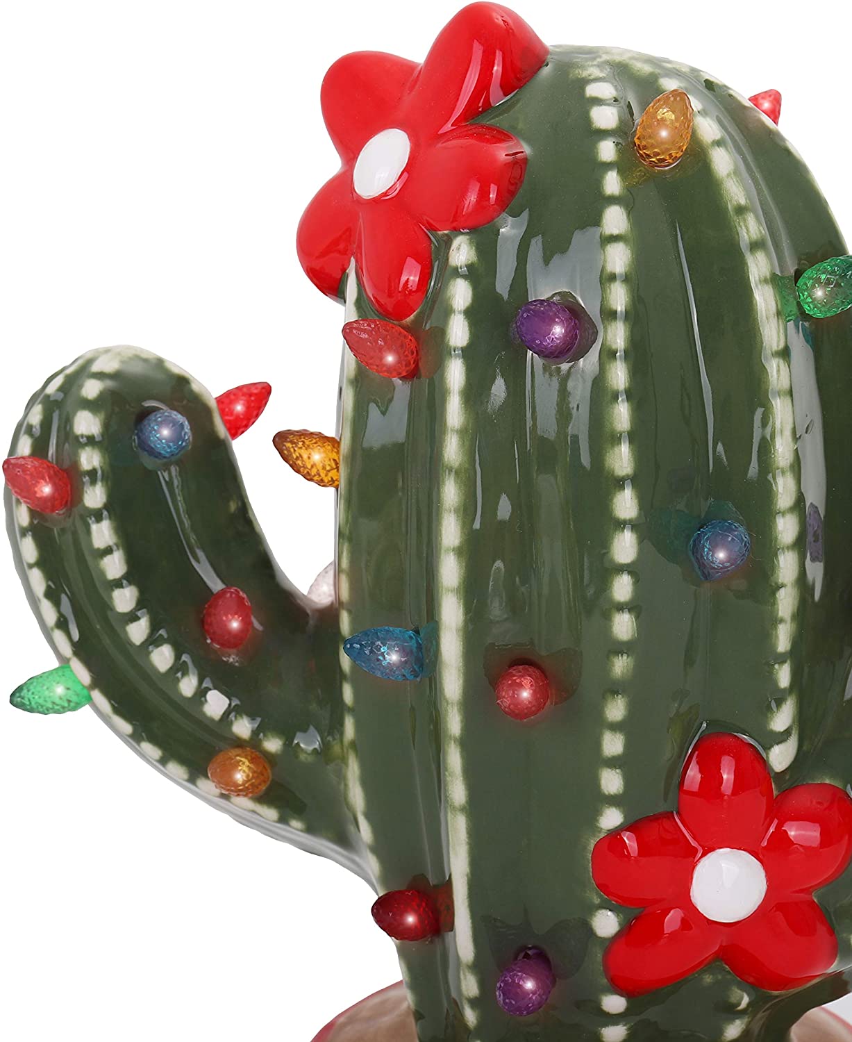 - HIGH GLOSS FINISH - The Christmas Classics Ceramic Christmas Tree Cactus comes in a high gloss finish to make your holiday decor pop. Pair with our Ceramic Christmas Camper, Truck, or one of our Lighted Ceramic Christmas Trees for a unique look. This retro, pre-lit cactus is the perfect addition to your holiday decor!