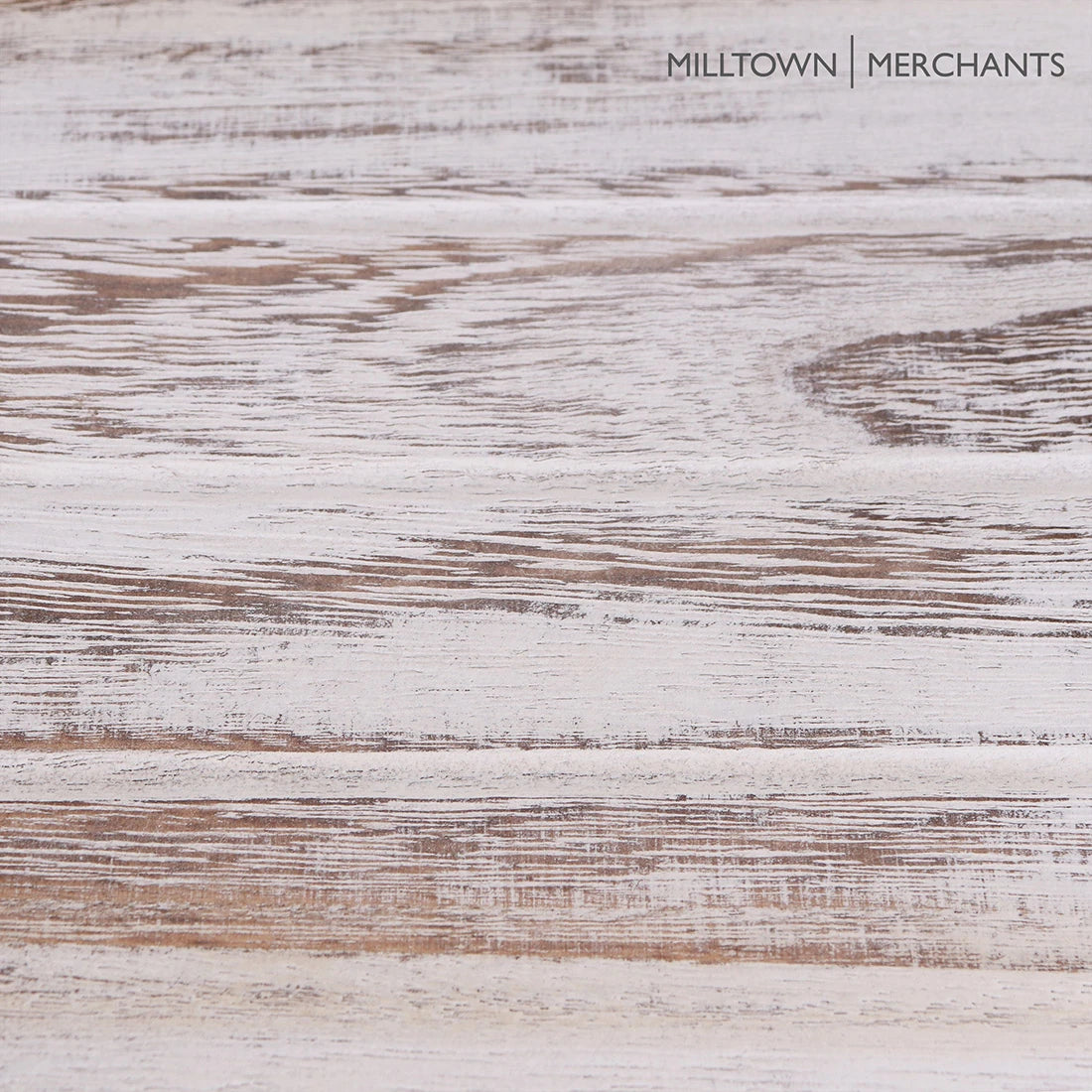 - RUSTIC HOME DECOR - The Milltown Merchants open bookshelf has a distressed, one of a kind finish. This farmhouse bookshelf features open shelves which can easily accommodate a wicker basket to stowaway accessories from view for a clean, polished look. The Milltown Merchants leaning shelf is a great alternative to a barrister bookcase, a metal bookcase, a sauder bookcase, or an oak bookcase.