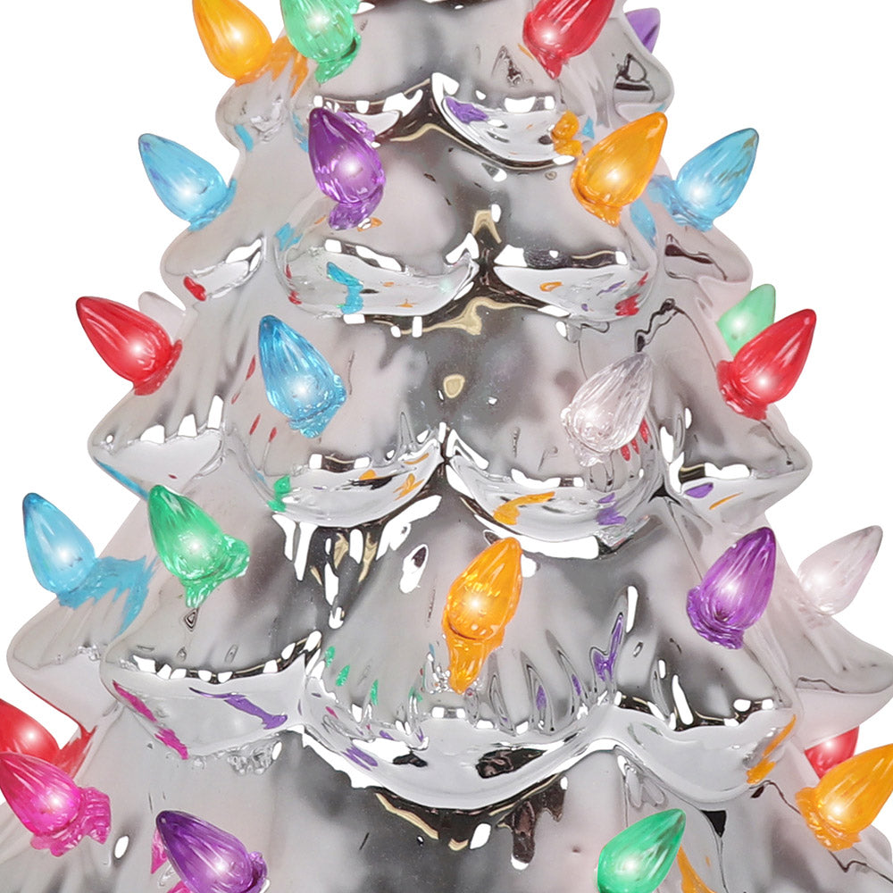 LED LIGHTS - Experience the brilliance of LED lights - cooler, safer, and brighter than ever before, lighting up your life without the heat and worry of traditional lighting options. Each vintage ceramic Christmas tree comes with a 5' plug-in light chord and extra Christmas light bulbs for the tree. Lights are glued in place and are non-removable. DIMENSIONS: Medium Ceramic Christmas Tree (11.5" H including the star X 6.5" Dia.)